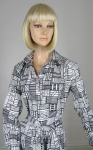 Next stop--Lanvin! It's no secret that some of our very favorite prints were made by the fashioners at Lanvin. This one is no exception. It features packing crates done in bold black and white. "Lanvin to Paris" here we come in a terrific shirtwaister that buttons from collar to hem. "Lanvin to New York" let's go there in our classic logo print dress.